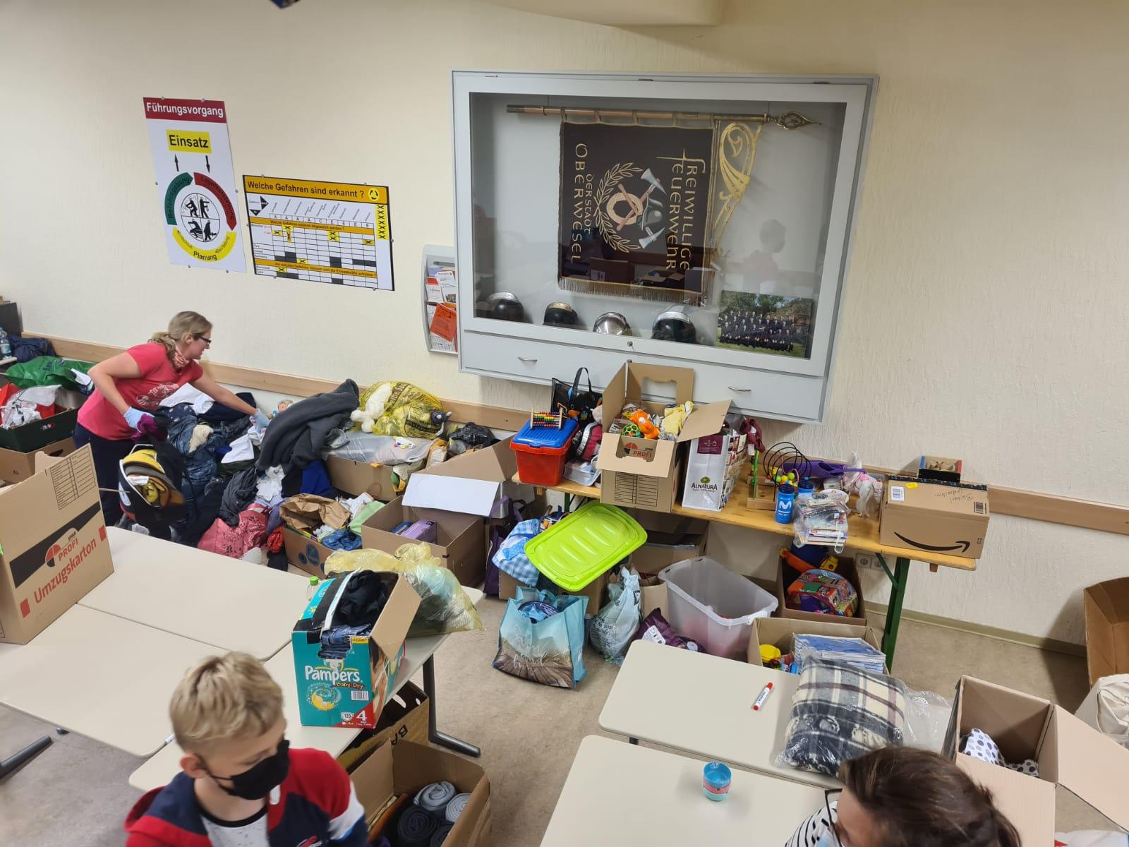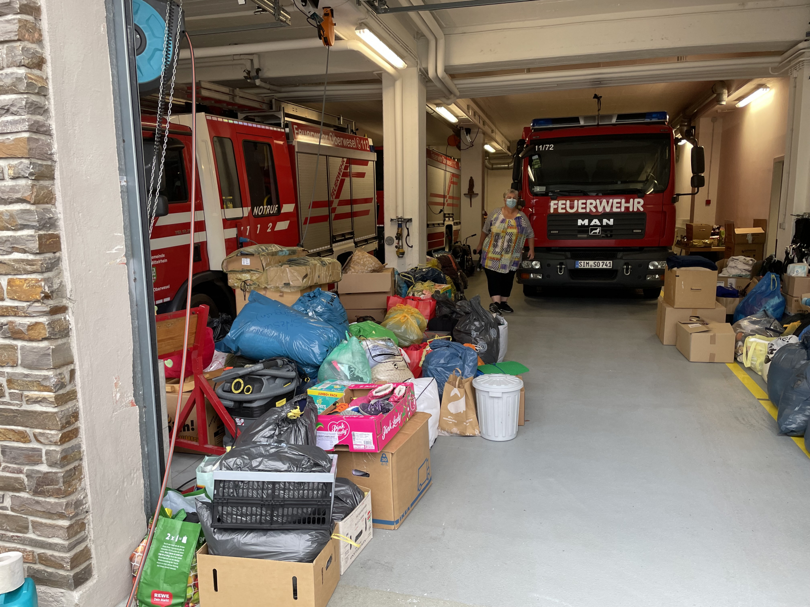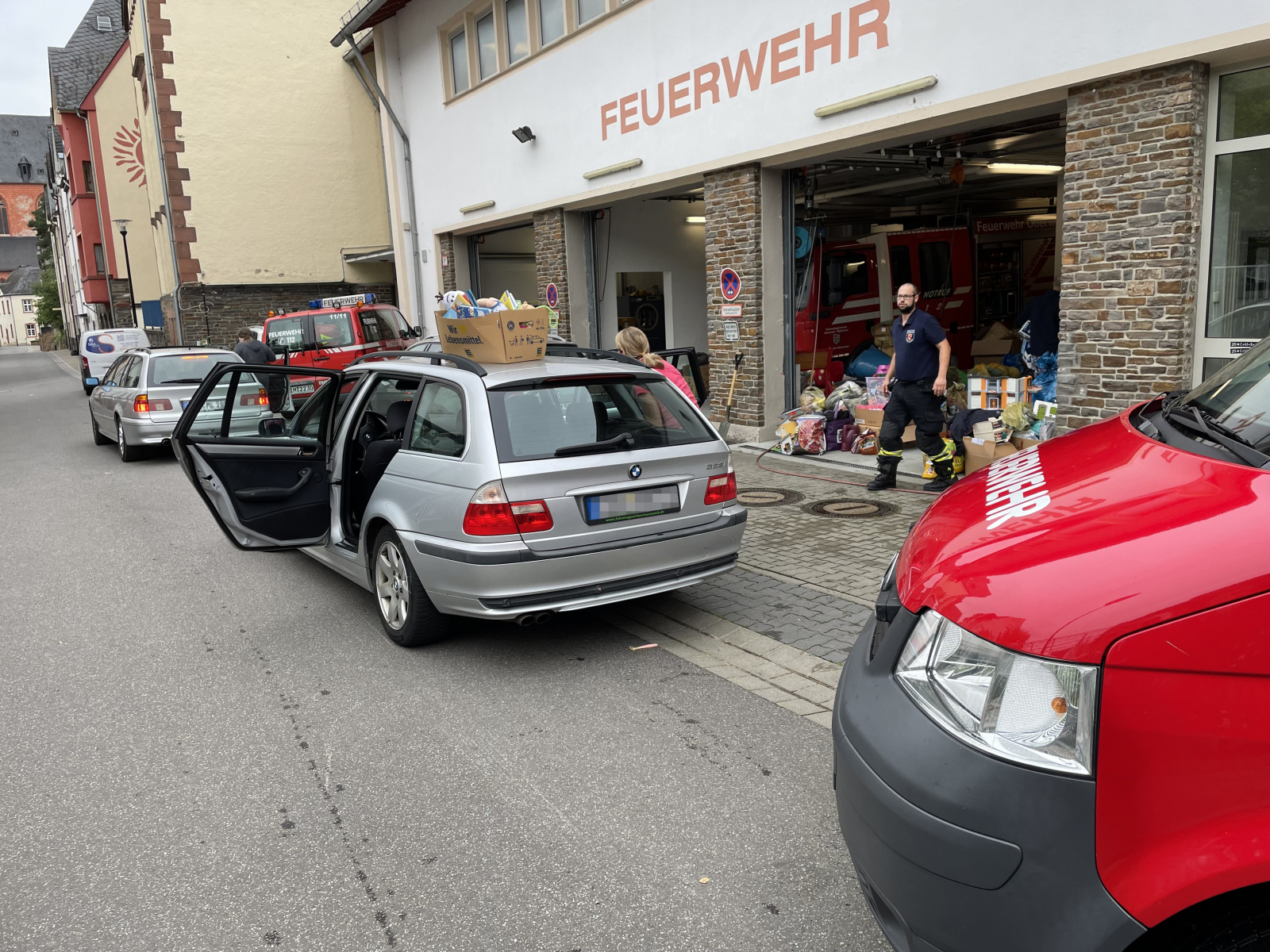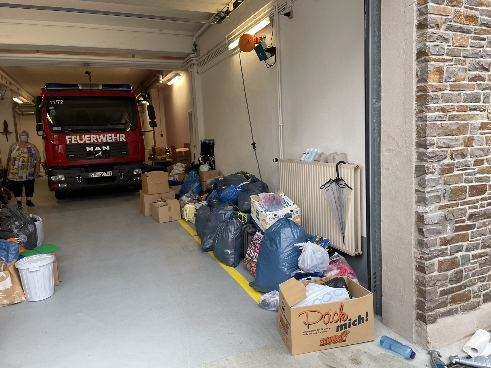 Direkt am nächsten Morgen um 9 Uhr trafen sich zwei Kameraden am Gerätehaus, mit dem Ziel, einen VW-Transporter mit Spenden zu füllen und nach Ahrweiler zu bringen. Bereits nach einer Stunde waren die Lager überfüllt und alle verfügbaren Kameraden wurden gebeten, in das Gerätehaus zu kommen. Aus der Bevölkerung bemerkten viele die große Spendenbereitschaft und halfen spontan mit Ihren Kindern den Aktiven Kameraden.