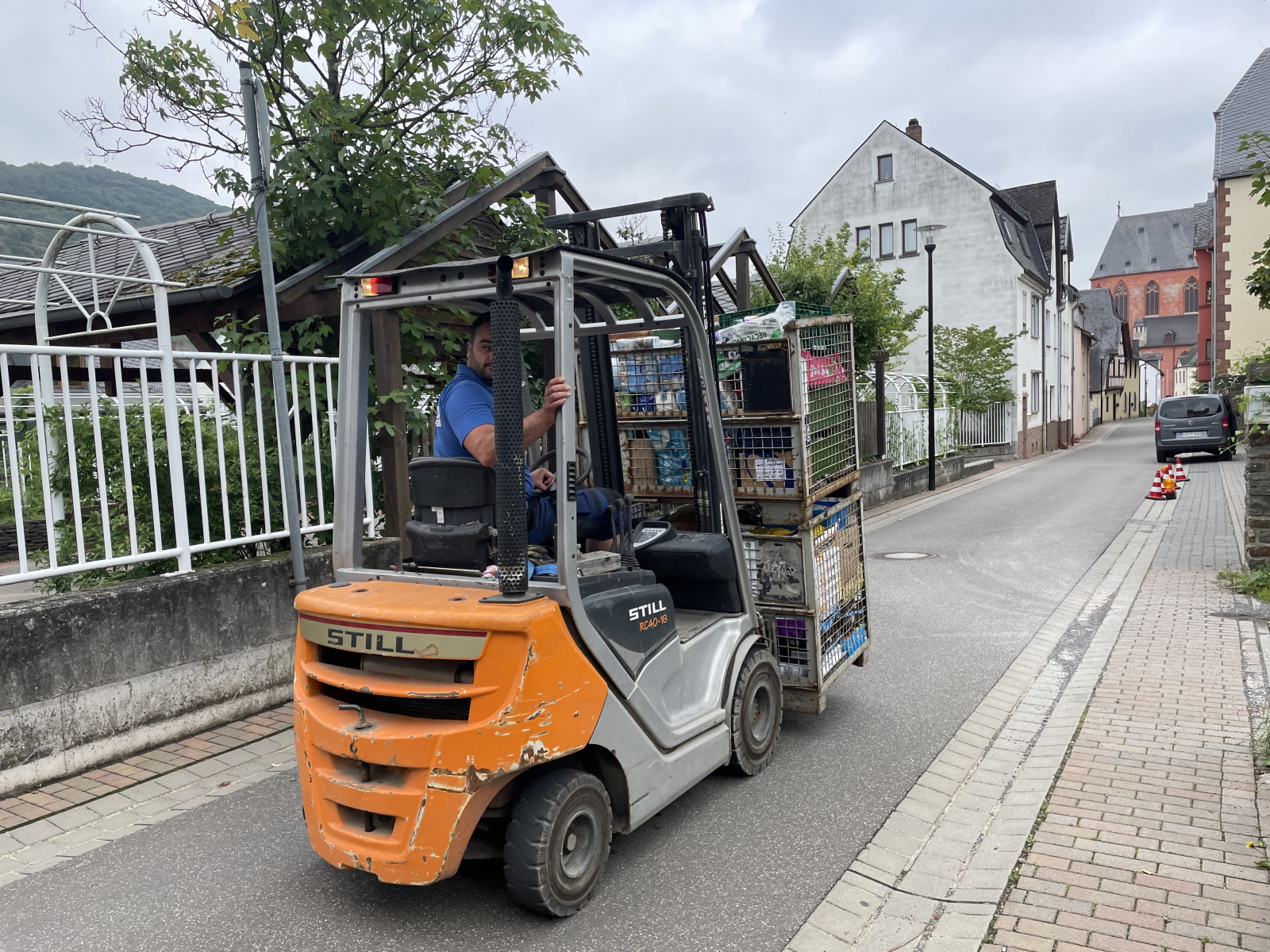 Am Samstag wurde der Einsatz von Beginn an für ein größeres Menschenaufkommen angepasst. So wurde in der Kirchstraße eine Einbahnstraßenregelung getroffen und Sortiertische zur Übergabe geschaffen. Erste 40 Tonner-LKW von Unternehmern aus der Region waren bereits auf dem Weg ins Gerätehaus, um Sachspenden aufzunehmen. Das Mehrzweckfahrzeug der Feuerwehr Oberwesel wurde vollständig Beladen und nach Schuld geschickt. Aufgrund der zahlreichen Kleider- und Textilspenden mussten wir die Annahme dieser am Samstag bereits ablehnen. “Die Hilfsbereitschaft der Menschen aus Oberwesel sowie der Umgebung ist enorm. Die weiteste Anreise heute waren 120 km, uns erreichen aber auch Anrufe aus Brandenburg.” so Initiatorin Nicole Stiehl.