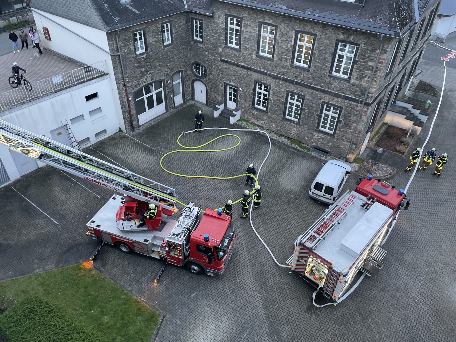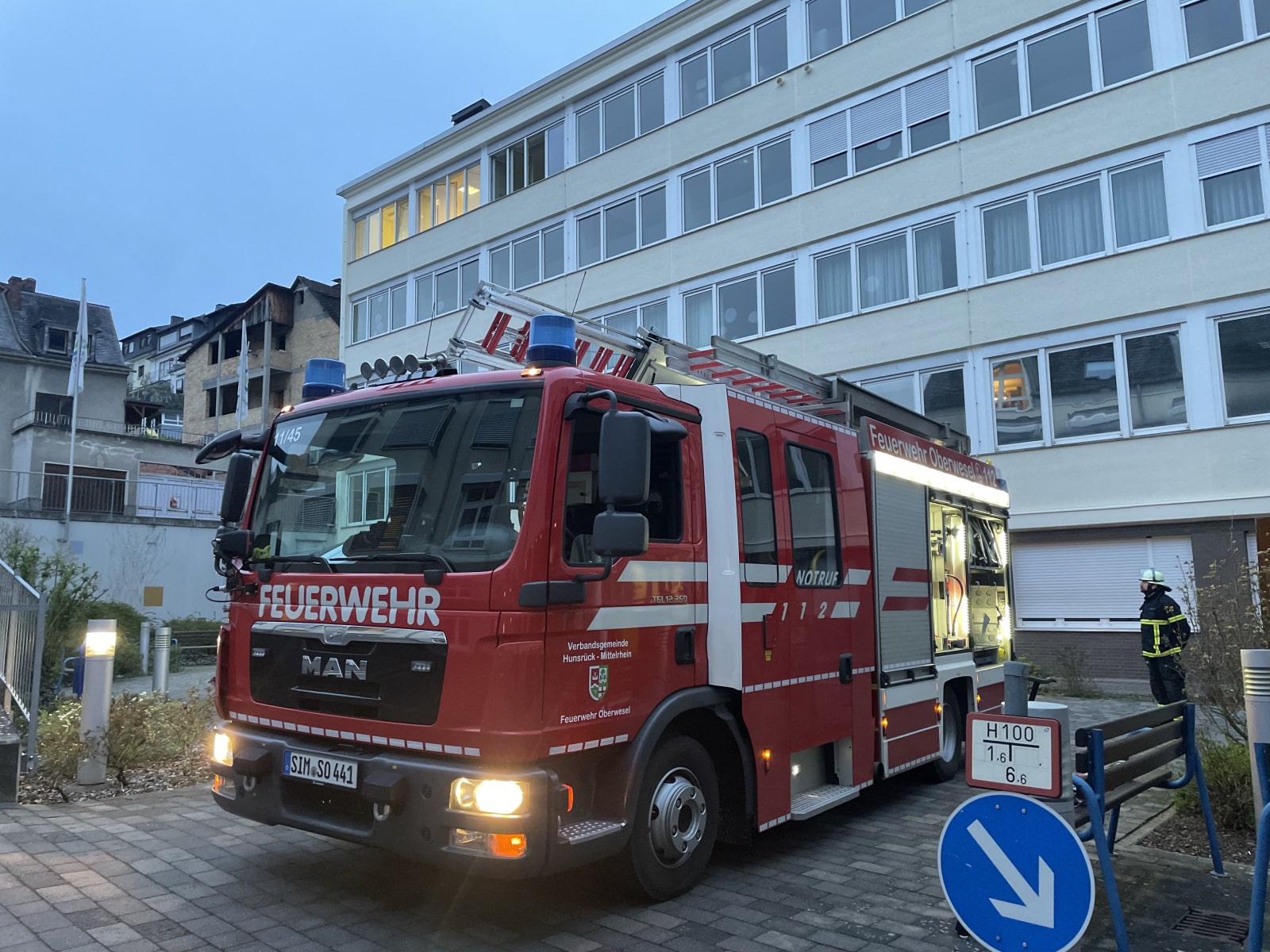 Am Dienstagabend führte die Freiwillige Feuerwehr Oberwesel eine erfolgreiche Zugübung im Gesundheitscampus durch. Die Einsatzlage sah einen Brand im 4. Obergeschoss des Altbaus vor, bei dem zwei Mitarbeiter des Hauses vermisst wurden.