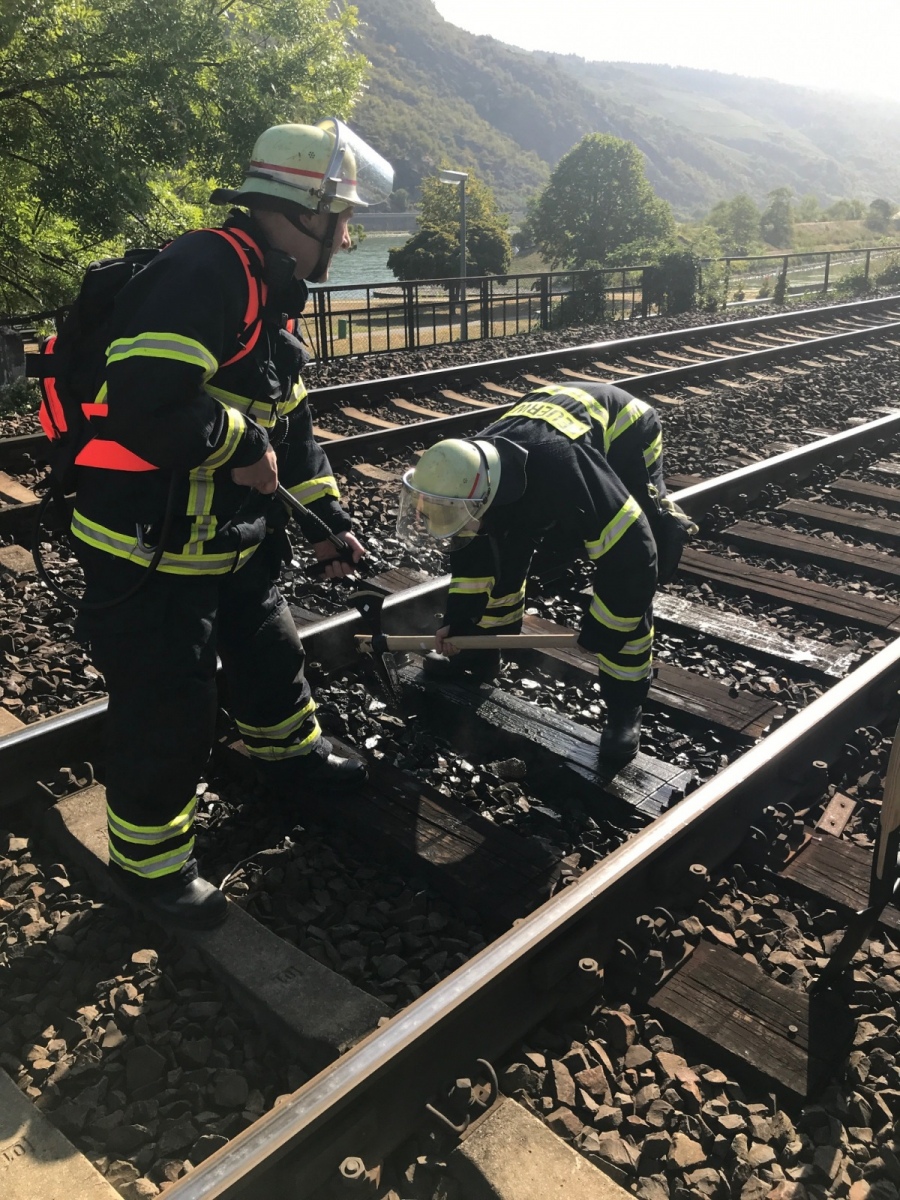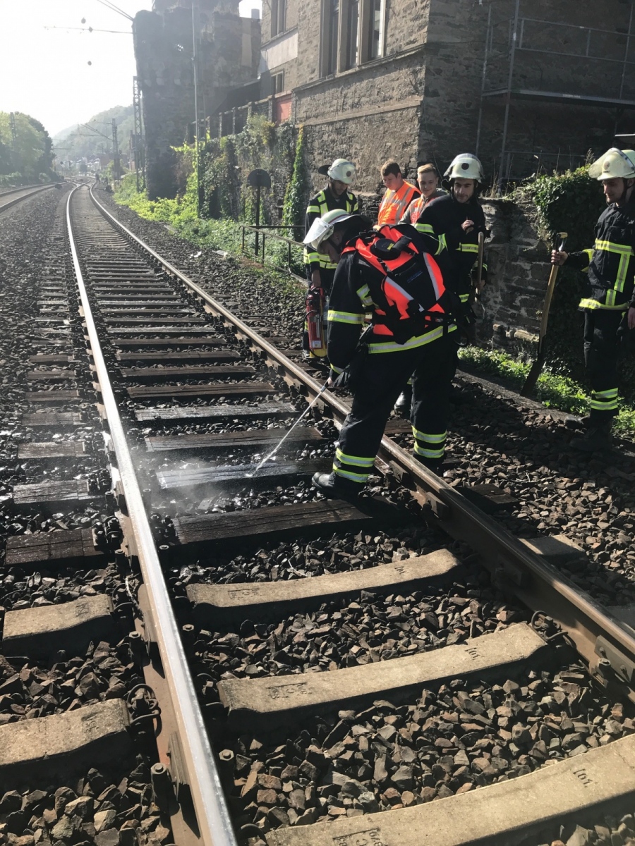 Am heutigen Vormittag wurde die Feuerwehr Oberwesel zu einem „B1“ Alarm alarmiert. In Höhe des Roten Turms brannte im Gleisbereich eine Bahnschelle aus unerklärbarem Grund. Nach der Streckensperrung durch die Notfallzentrale der Deutsche Bahn, konnte diese mit einem Kleinlöschgerät gelöscht. Der Einsatz wurde nach 30 Minuten beendet.