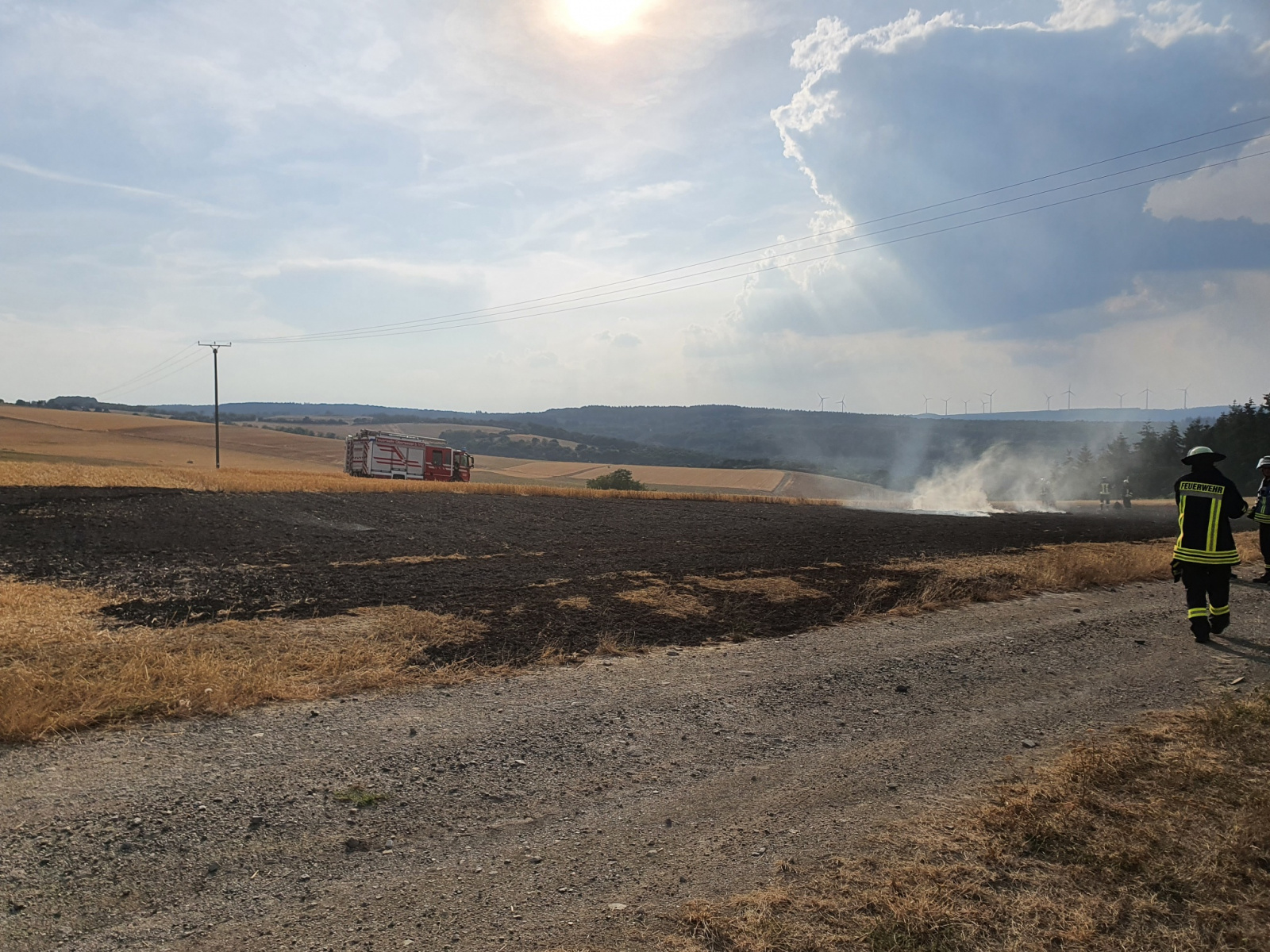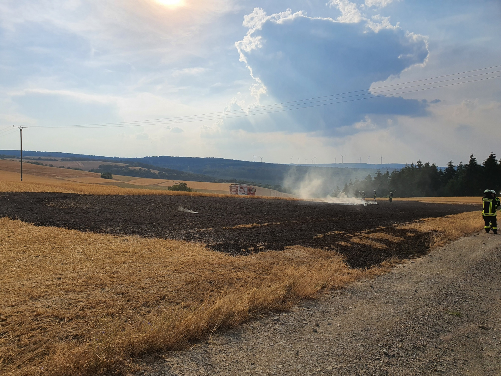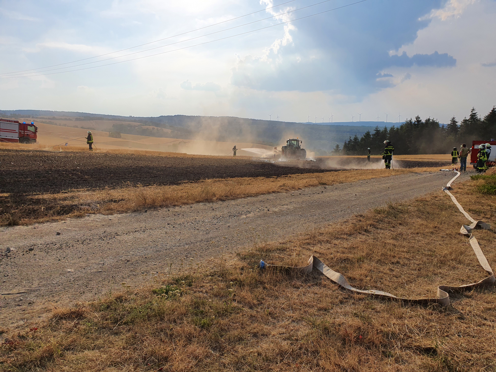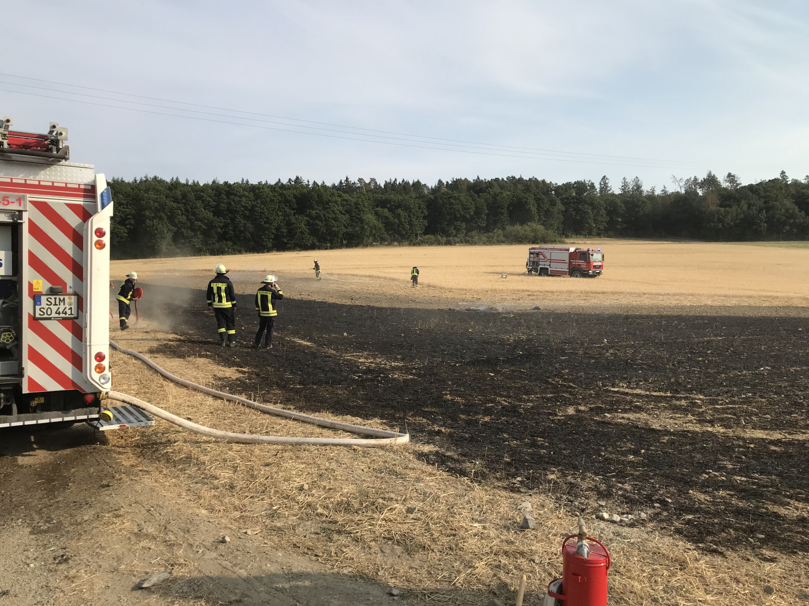 Aufgrund von Maschinenarbeiten wurde ein frisch gemähtes Feld in Brand gesetzt. Durch die zügigen Sofort-Maßnahmen des Landwirtes wurde eine weitere Ausbreitung verhindert und der Einsatz für die Feuerwehr beschränkte sich auf Nachlöscharbeiten. Der Einsatz konnte nach ca. einer Stunde beendet werden.