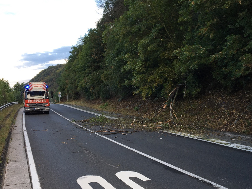 Während des wöchentlichen Übungsabends wurden wir durch einen Anrufer über einen umgestürzten Baum auf der Mainzer Straße benachrichtigt. Umgehend rückten Kräfte der Feuerwehr Oberwesel zur Einsatzstelle aus und räumten zahlreiche Äste und Unrat von der Straße. Gemeinsam mit dem Bauhof der Stadt Oberwesel wurde die Einsatzstelle anschließend abgesichert.